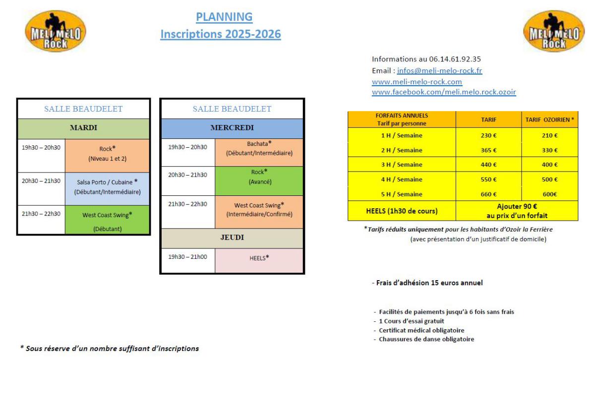 Planings et Tarifs 2025-2026
